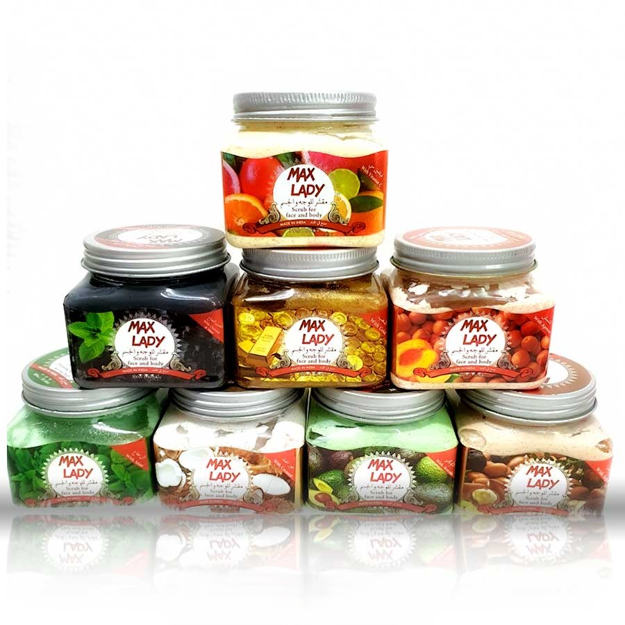 محصولات اسکراب مکس لیدی در دو نوع شنی و ژلی عرضه میشوند و بهخوبی سلولهای مرده پوست را از بین میبرند.