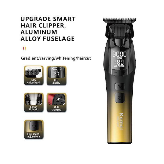 ماشین اصلاح حرفهای کیمی مدل KM-1859 با بدنهای فلزی و مقاوم، کیفیت ساخت بالا و دوام طولانیمدت را تضمین میکند. طراحی ارگونومیک این دستگاه علاوه بر زیبایی، کاربری راحت و بدون خستگی را برای استفاده طولانی فراهم میآورد. موتور قدرتمند با توان ۵ وات و سرعت عملکرد تا ۸۰۰۰ دور در دقیقه، اصلاح سریع، دقیق و بدون وقفه حتی روی موهای ضخیم را ممکن میسازد. همچنین حالت توربو برای افزایش سرعت برش در مواقع نیاز تعبیه شده است. تیغههای استیل ضدزنگ با پوشش DLC (Diamond-Like Carbon) از ویژگیهای بارز این مدل است که باعث دوام بیشتر و برش بسیار تیز و روان بدون کشیدگی مو میشود. قابلیت اصلاح نزدیک به پوست (Zero Gap) نیز برای خطوط دقیق و مرتب طراحی شده است. باتری لیتیومی قدرتمند با ظرفیت ۲۰۰۰ میلیآمپر ساعت، پس از ۳ ساعت شارژ کامل، امکان استفاده مداوم تا ۲۰۰ دقیقه را فراهم میکند. شارژ از طریق درگاه USB انجام شده و نمایشگر LED میزان شارژ و وضعیت عملکرد دستگاه را بهوضوح نمایش میدهد. این ماشین اصلاح برای اصلاح مو، ریش، سبیل و خطوط ظریف ایدهآل است و به دلیل امکانات حرفهای و بدنه مقاوم، گزینهای مطمئن برای استفاده خانگی و حرفهای به شمار میآید.