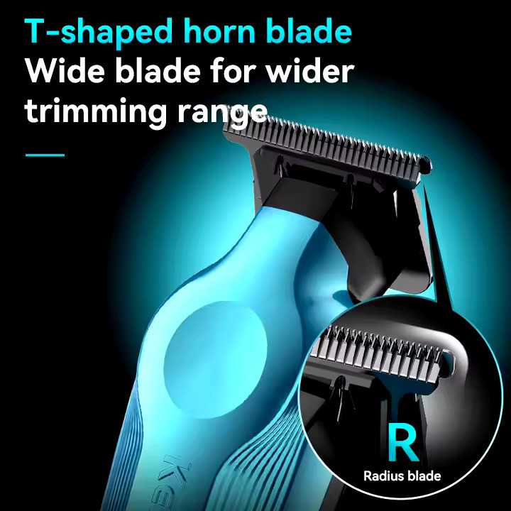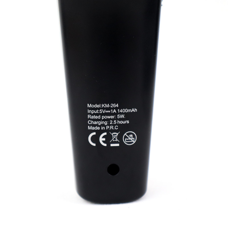 ماشین اصلاح KM-264 با طراحی مدرن و سبک ساخته شده است. بدنه ارگونومیک آن، بهراحتی در دست جای میگیرد و استفاده طولانیمدت را بدون خستگی ممکن میسازد. تیغههای T شکل، دقت و کارایی بالا را تضمین میکنند.