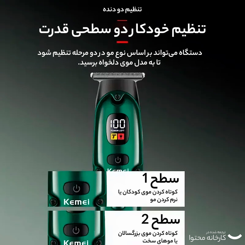 ماشین اصلاح کیمی مدل KM2259، یک ابزار قدرتمند و کارآمد است که با طراحی ارگونومیک و قابلیتهای پیشرفته، گزینهای عالی برای اصلاح مو و صورت است. اگر دنبال کیفیت و راحتی هستید، این دستگاه را فراموش نکنید.