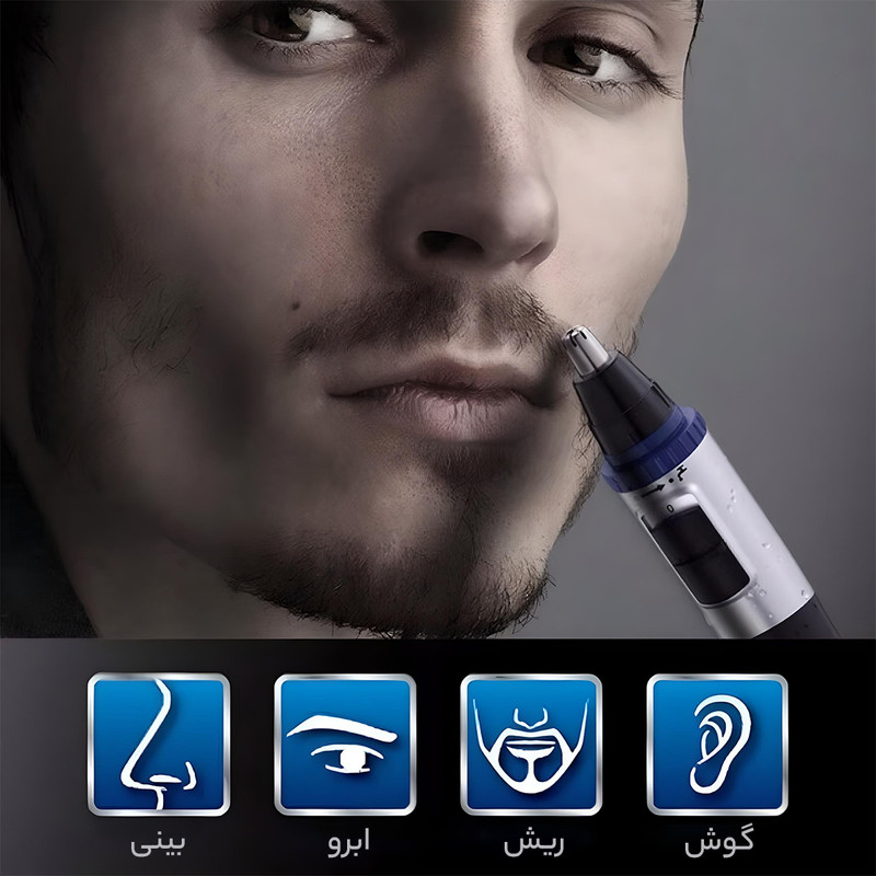 - اصلاح موها: دستگاه را روشن کنید و به آرامی موهای گوش و بینی را برش دهید.