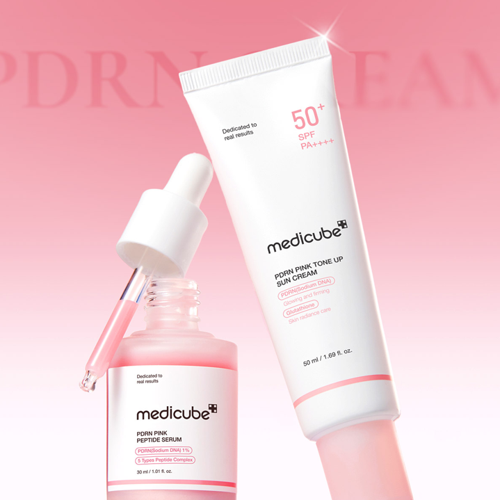کرم ضد آفتاب تونآپ صورتی PDRN مدی کیوب PDRN Pink Tone Up Sun Cream (50ml)