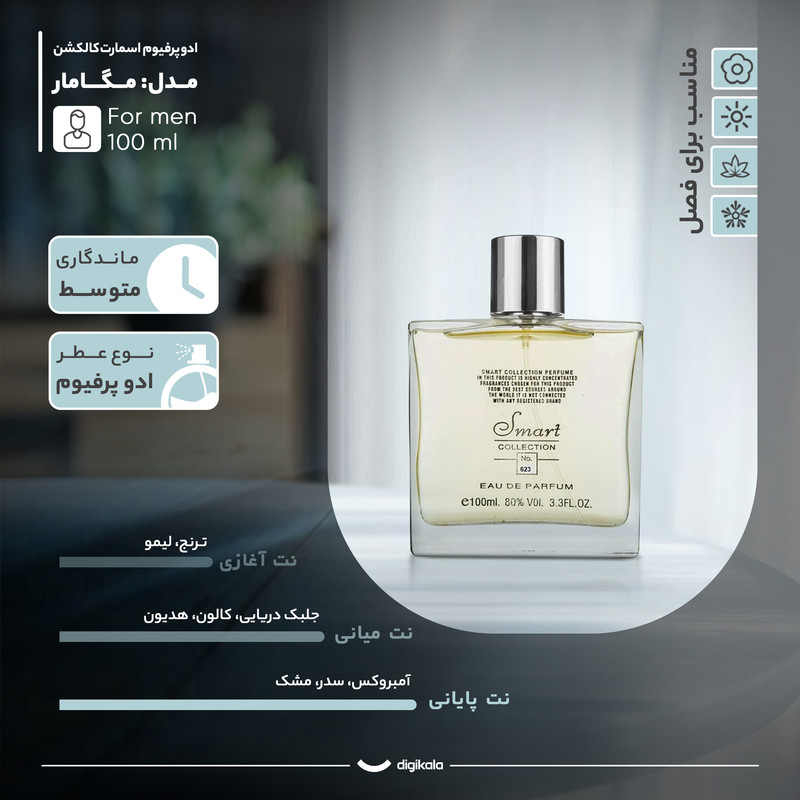 ادو پرفیوم مردانه اسمارت کالکشن مدل مگامار کد 623 با رایحه خنک و تلخ حجم 100 میلی لیتر