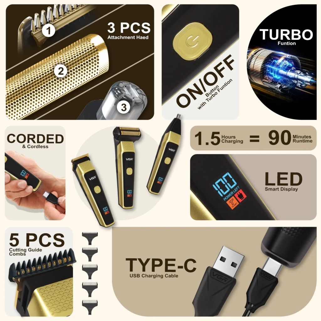 چیزی که VGR 366 را از خیلی از تریمرهای معمولی جدا میکند، ترکیب کارایی، طراحی و قیمت است. این دستگاه یک کیت کامل اصلاح است، نه فقط یک ماشین اصلاح ساده.